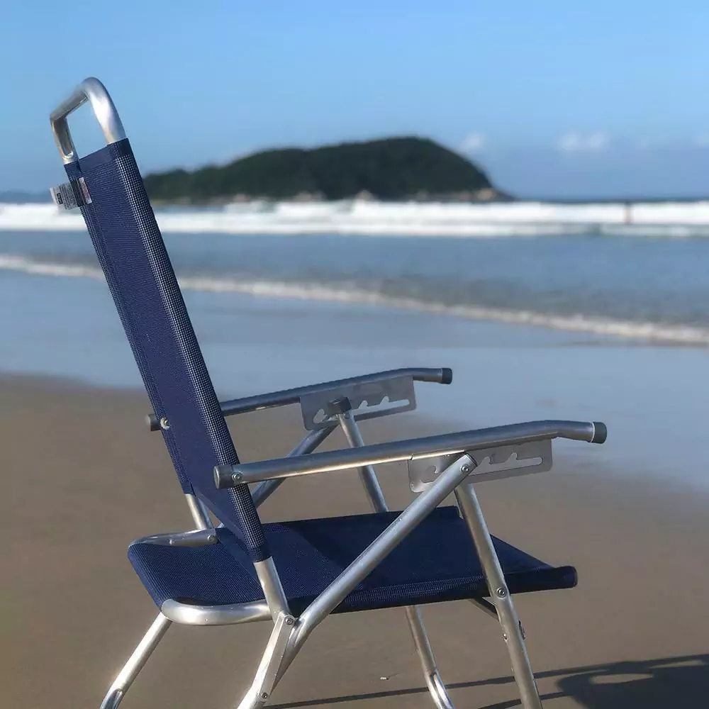 Rebites que não enferrujam!!!!A Cadeira King Reclinável ZAKA tem seus principais diferenciais o conforto e resistência por ser mais alta e mais larga é indicada para pessoas com até 140 kg, mais altas ou com sobrepeso. Fabricada em alumínio de alta resistência e que não enferruja, tecido BMDNET, soldado eletronicamente, sem costuras, possui 5 posições, braços de alumínio. Assento duplo. Atende perfeitamente públicos PLUS SIZE e OVERSIZE. Possui proteção que não risca o chão. Além disso, pode ser utilizada em diversos ambientes, como praia, camping e jardim, proporcionando ótimos momentos de lazer. Diferencial: a marca ZAKA é reconhecida por ser uma marca de qualidade. Todos os produtos são revisados e testados. A cadeira King Reclinável é muito maior e muito mais resistente. Utilizamos os melhores componentes e insumos do mercado.