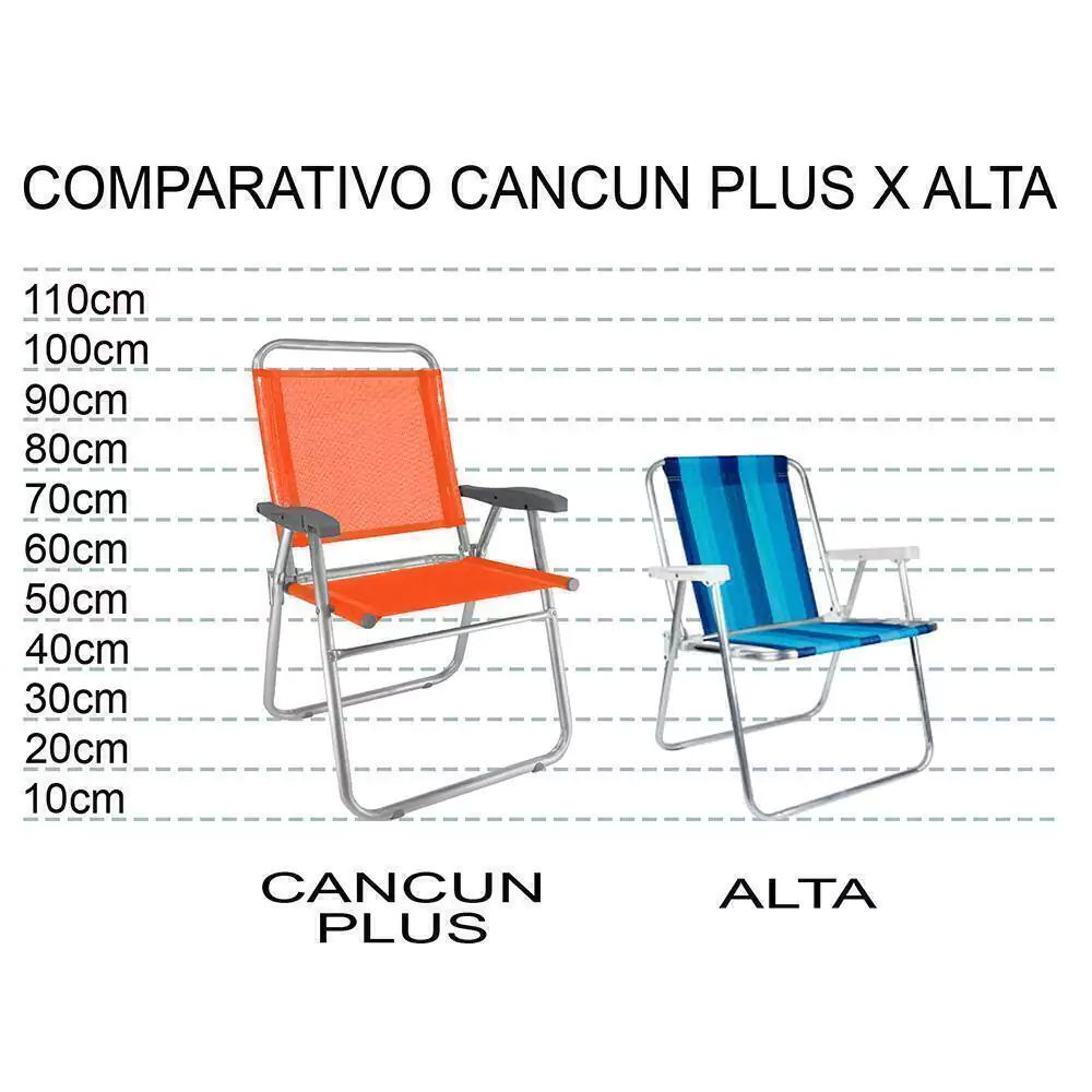 Rebites que não enferrujam!!!!A Cadeira Cancun Plus Alumínio ZAKA é ideal para uso no litoral. Tem seus principais diferenciais a largura e a altura e é indicada para pessoas com até 120 kg, mais altas. Fabricada em alumínio de alta resistência e que não enferruja, tecido BMDNET, soldado eletronicamente, sem costuras, assento duplo. Atende público exigente, com alto padrão de qualidade. Possui proteção que não risca o chão. Além disso, pode ser utilizada em diversos ambientes, como praia, camping e jardim, proporcionando ótimos momentos de lazer. Diferencial: a marca ZAKA é reconhecida por ser uma marca de qualidade. Todos os produtos são revisados e testados. A cadeira Cancun Plus é muito maior e muito mais resistente. Utilizamos os melhores componentes e insumos do mercado.