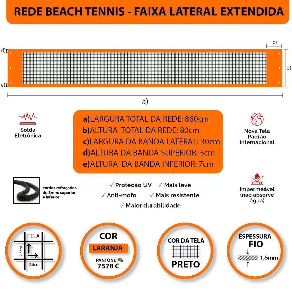 Itens inclusos: 01 Rede Beach Tennis Laranja